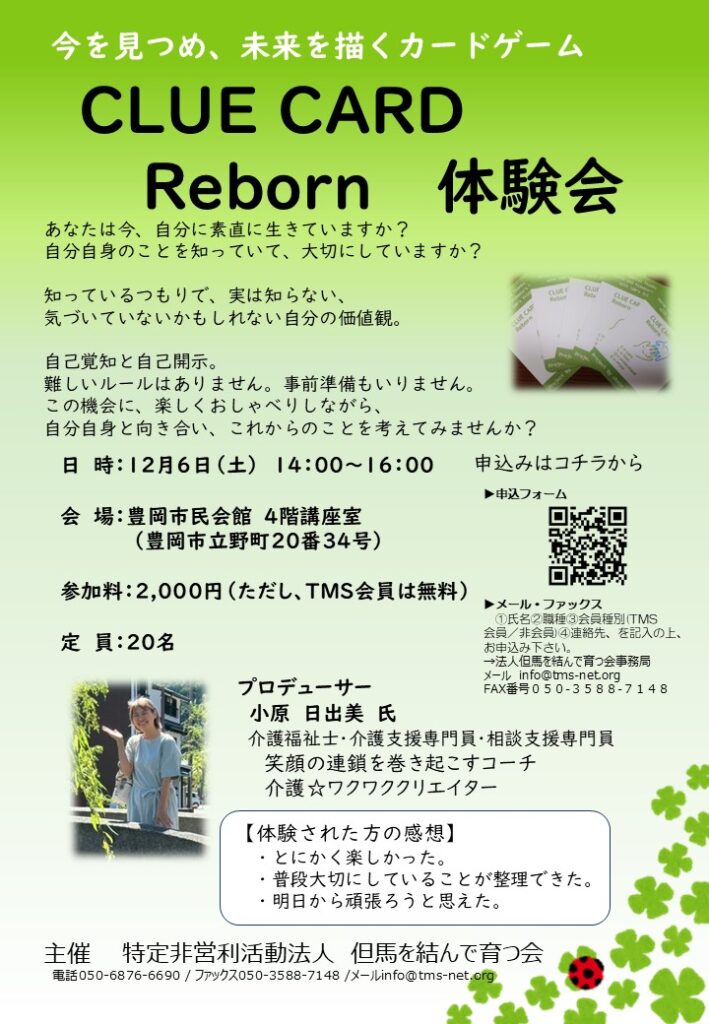 ■CLUE CARD Reborn体験会 12月6日(土)14時~16時 @豊岡市民会館(4階講座室)豊岡市立野町20番34号